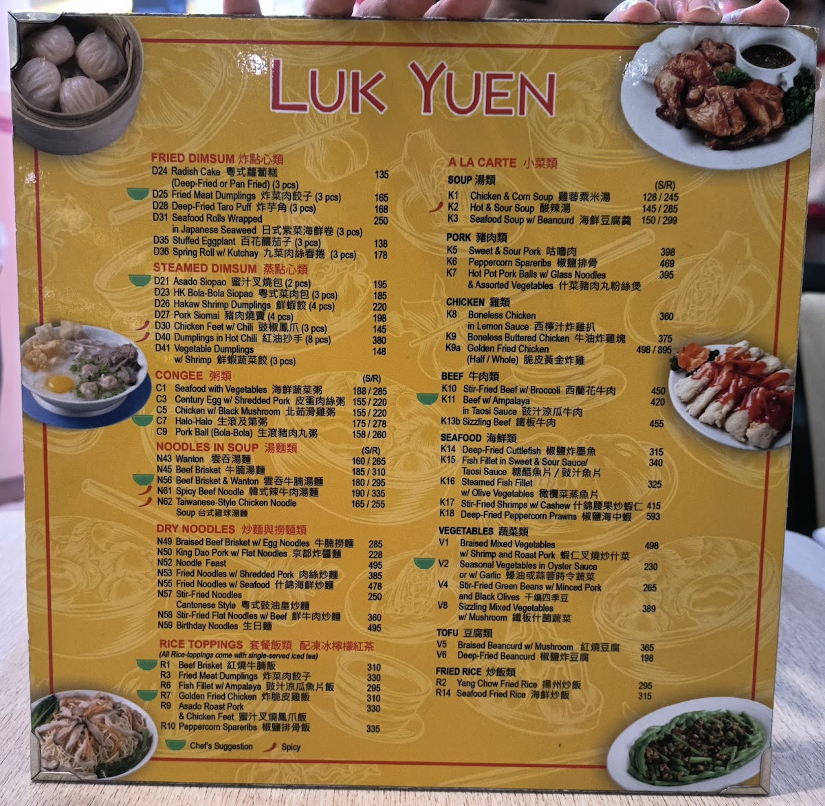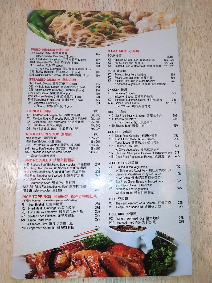 The menu at LUK YUEN Chinese Restaurant offers a straightforward and comforting selection of traditional Chinese dishes, perfect for both quick meals and more relaxed dining moments. From hearty noodle soups to simple rice porridges and a variety of dim sum favorites, the menu reflects a familiarity that pairs well with the casual, everyday setting of the Cash & Carry Mall.