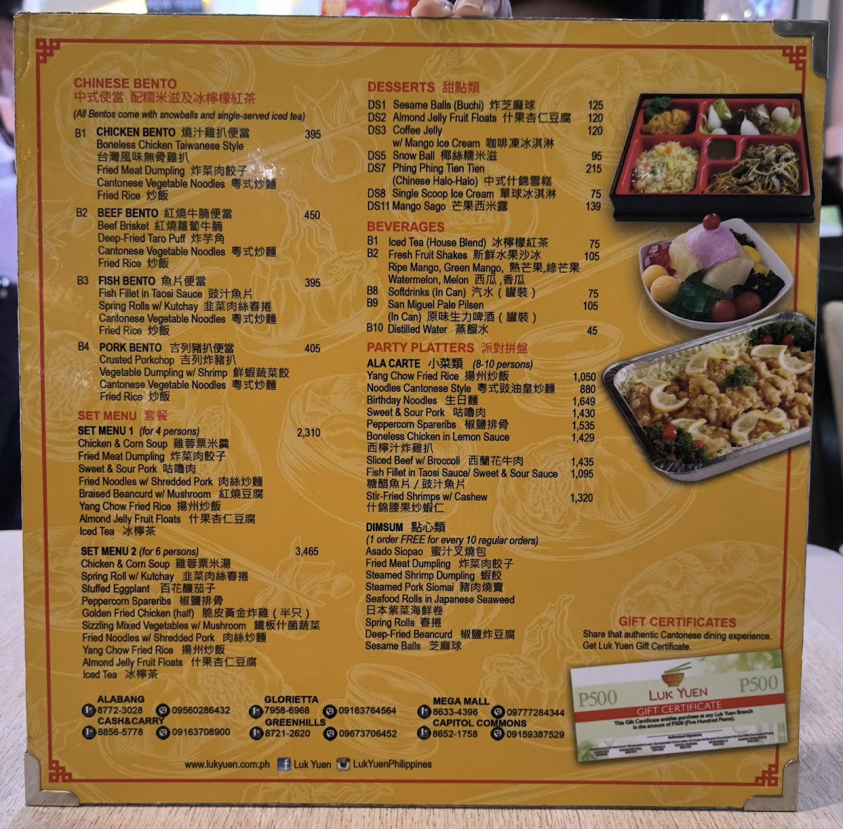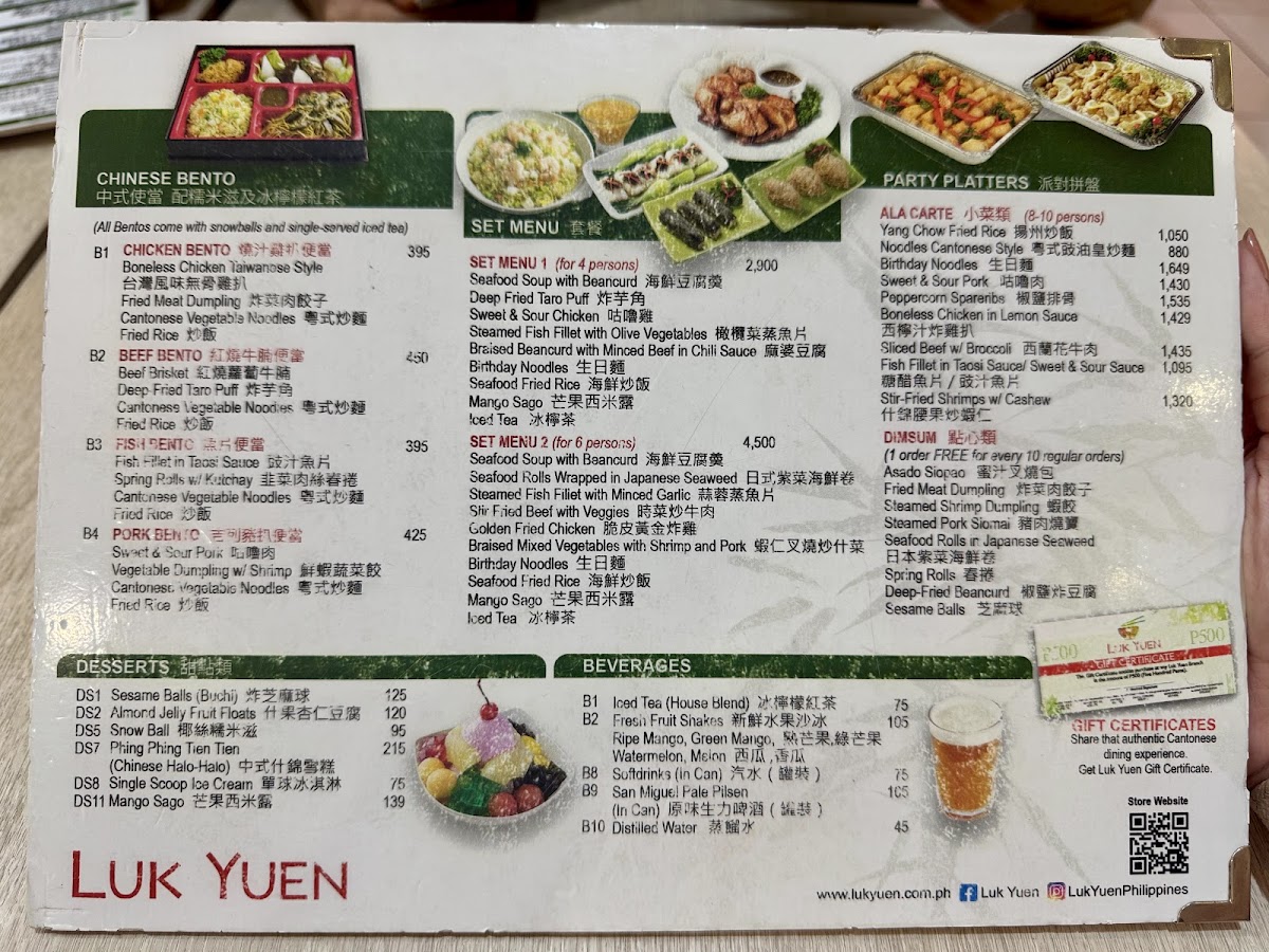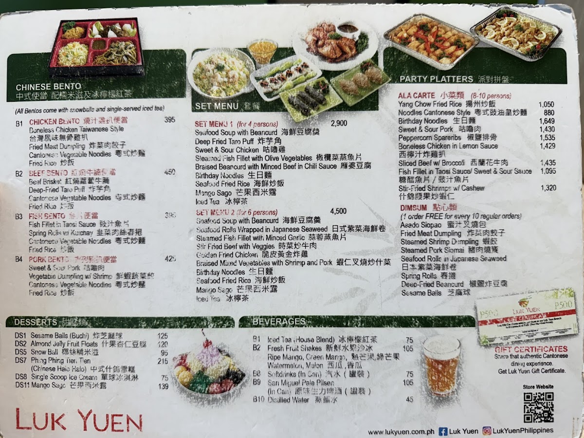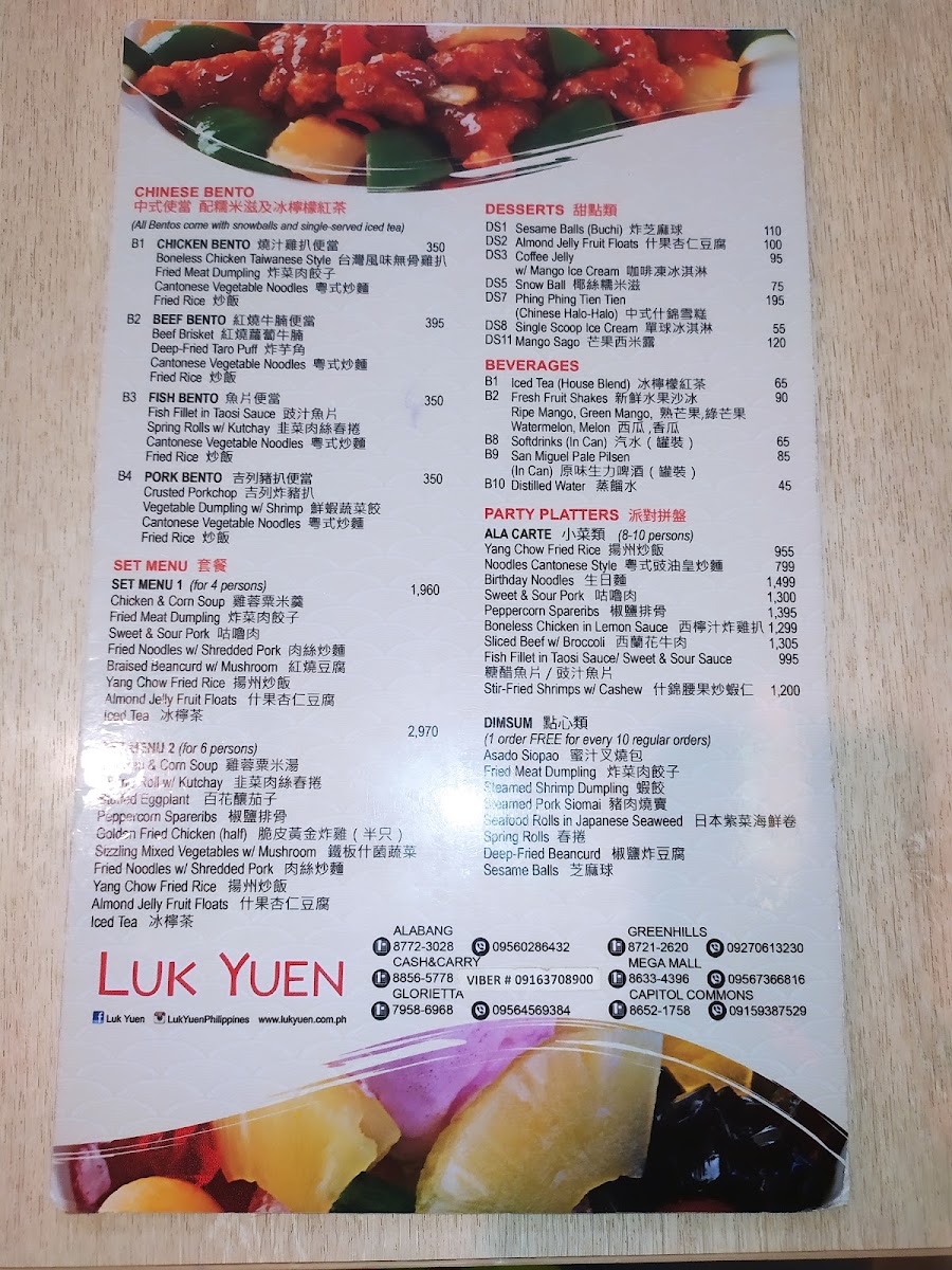 LUK YUEN Chinese Restaurant, Cash and Carry Mall Makati City Menu